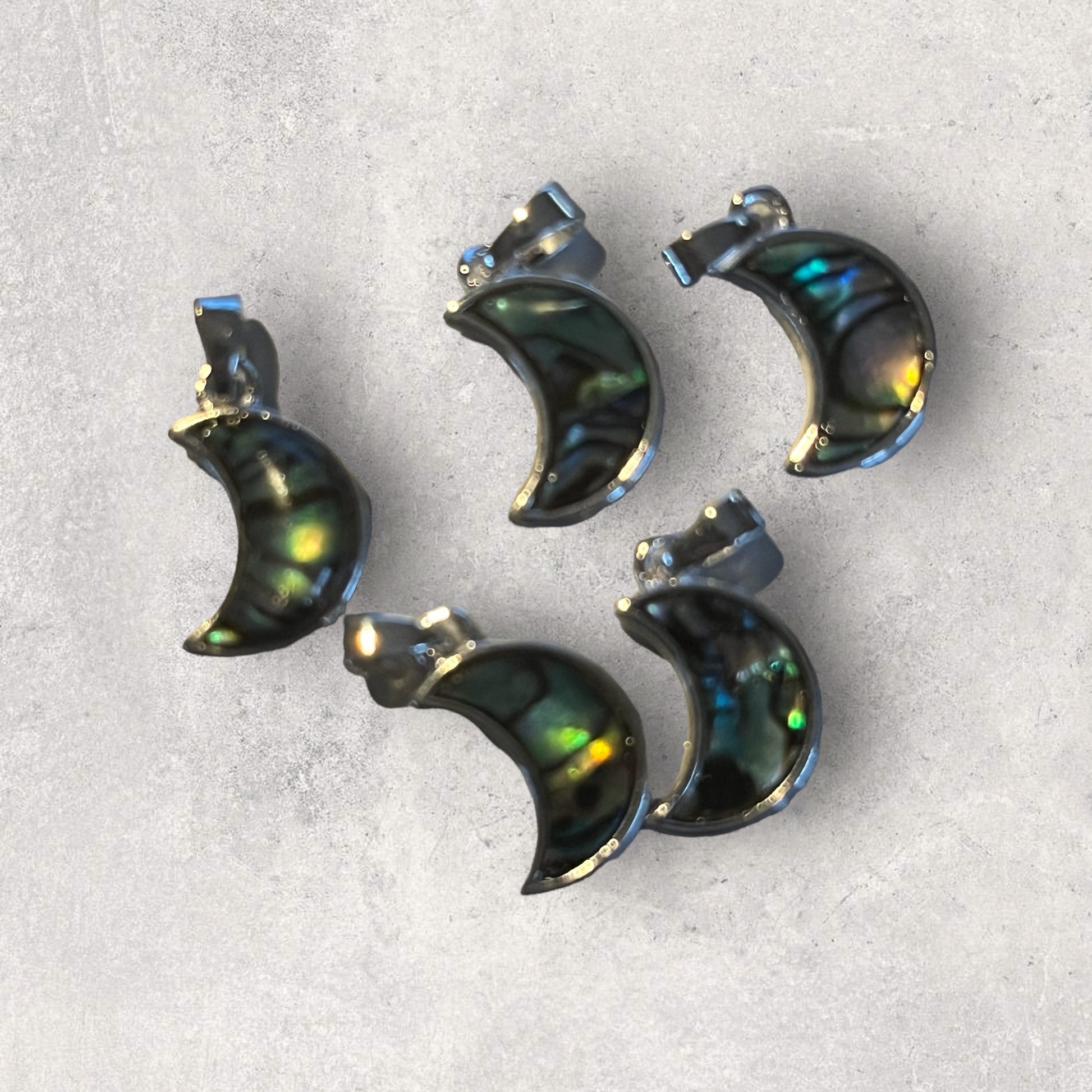 Abalone pendants featuring moons, dolphins, trees of life, and more!