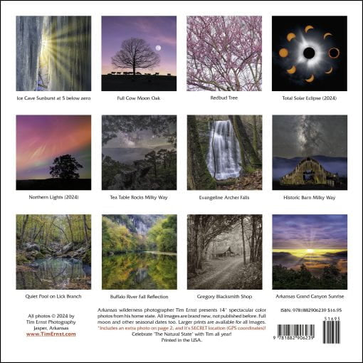 Arkansas wilderness photographer Tim Ernst presents 14 spectacular color photos from his home state. All images are brand new this year and never published before, including a composite 2024 image of the total solar eclipse.