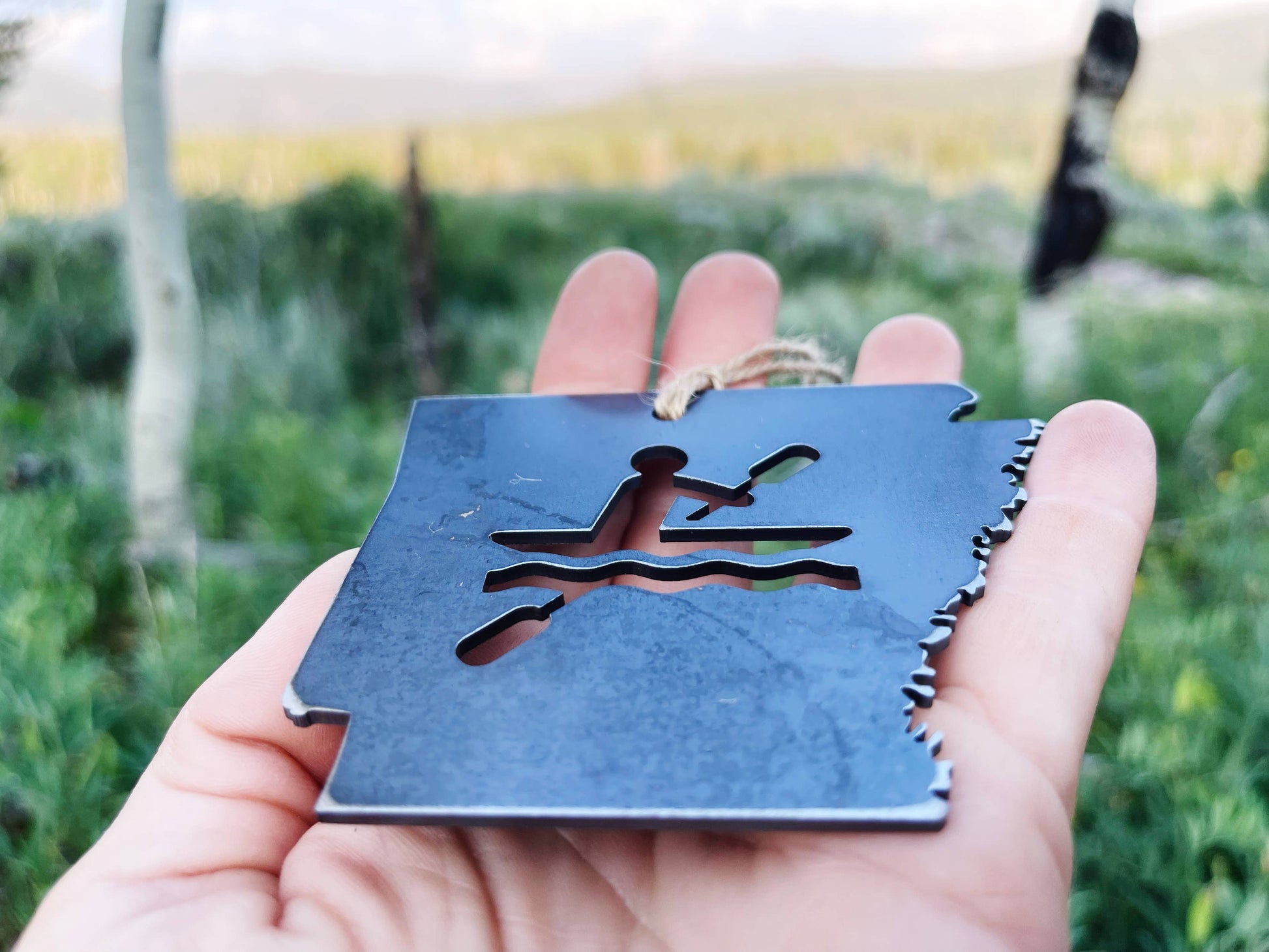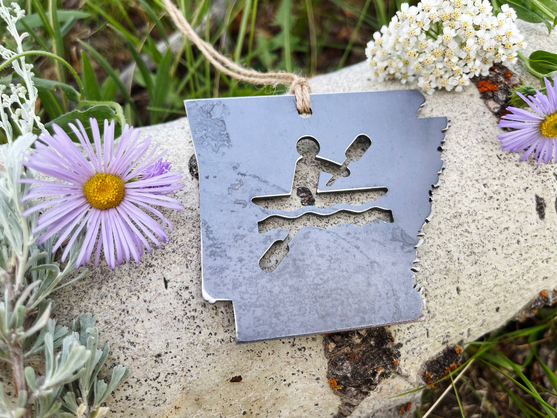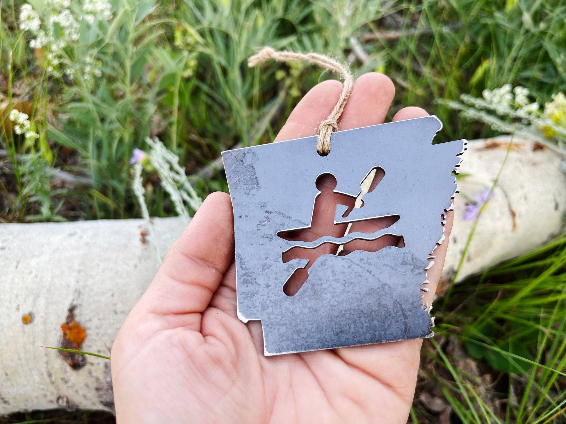 Arkansas State Kayak or Canoe Ornament made from Raw Steel