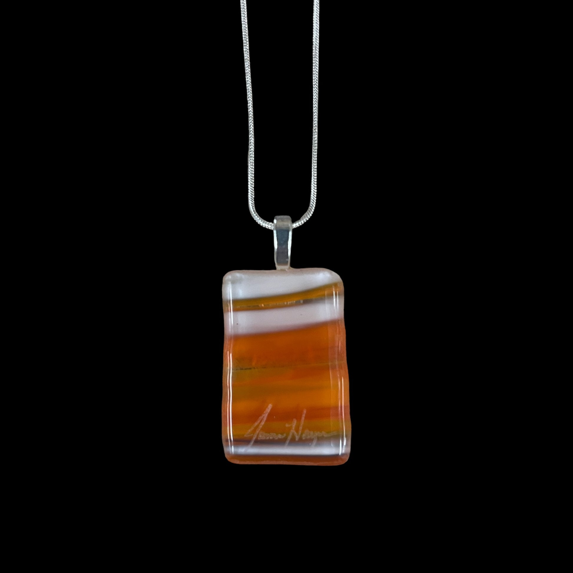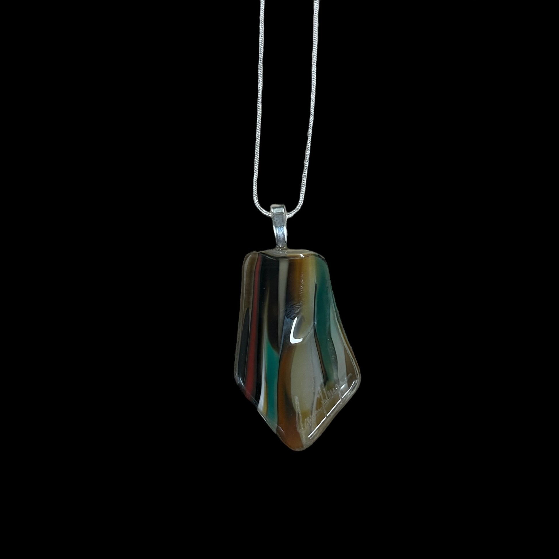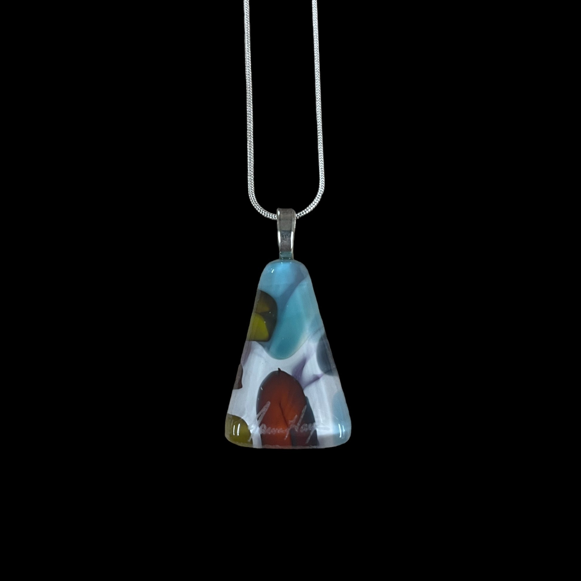 No two James Hayes' pendants are ever exactly alike! Handcrafted and signed from his fine art glass made in Arkansas, these pendants are the epitome of fine fashion without the expense. Comes with a silver 20 inch serpentine chain.