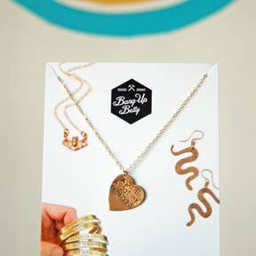 Invite the world to ask you about your pronouns with this hand-stamped Ask Me About My Pronouns Necklace. The solid brass heart is stamped by hand and measures about 1 inch across. Chain is 14k gold-filled. Each necklace comes on a cute card back.