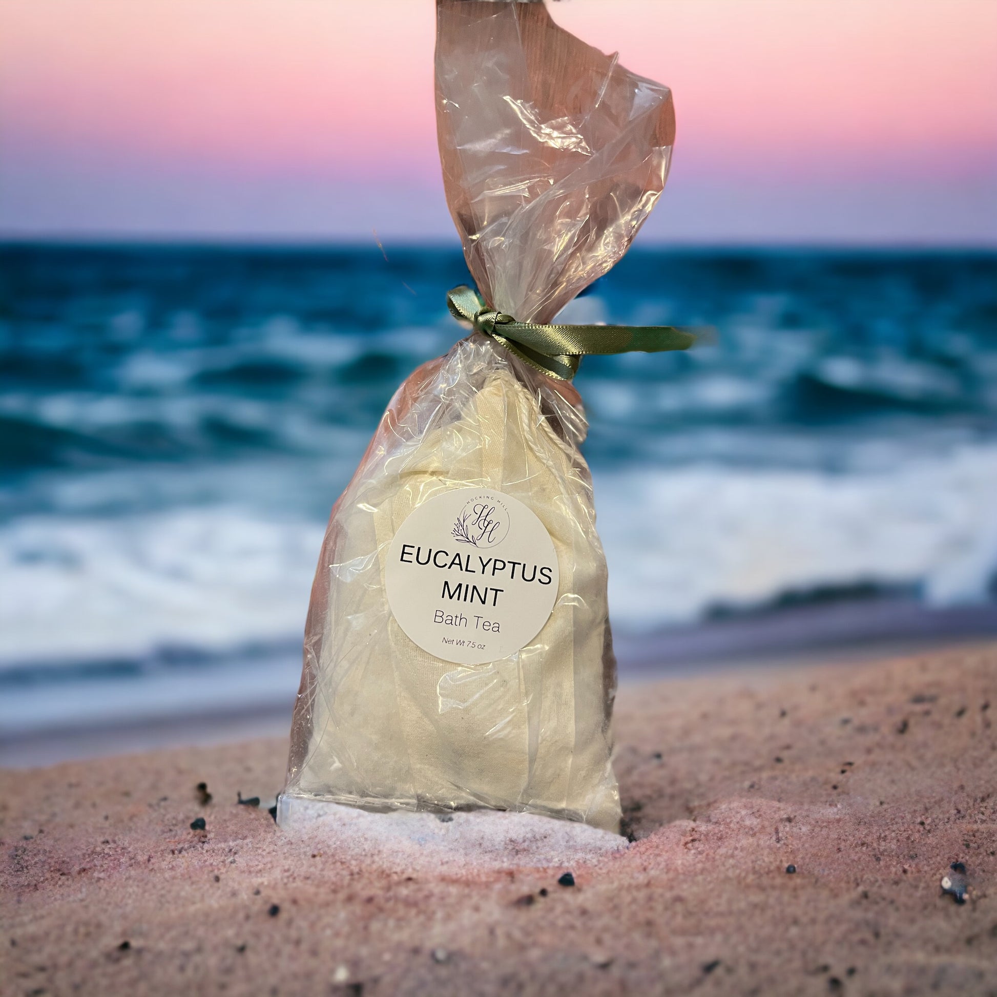 To use: Hang from faucet and allow water to flow over while filling tub. Squeeze to release any remaining salts, leaving only herbs in the bag.