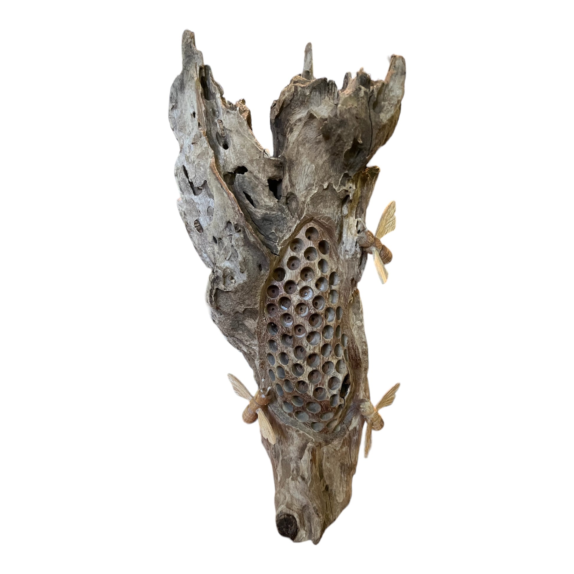 Hand-carved in Indonesia, each hive is crafted from wood and has detachable bees. No two alike.