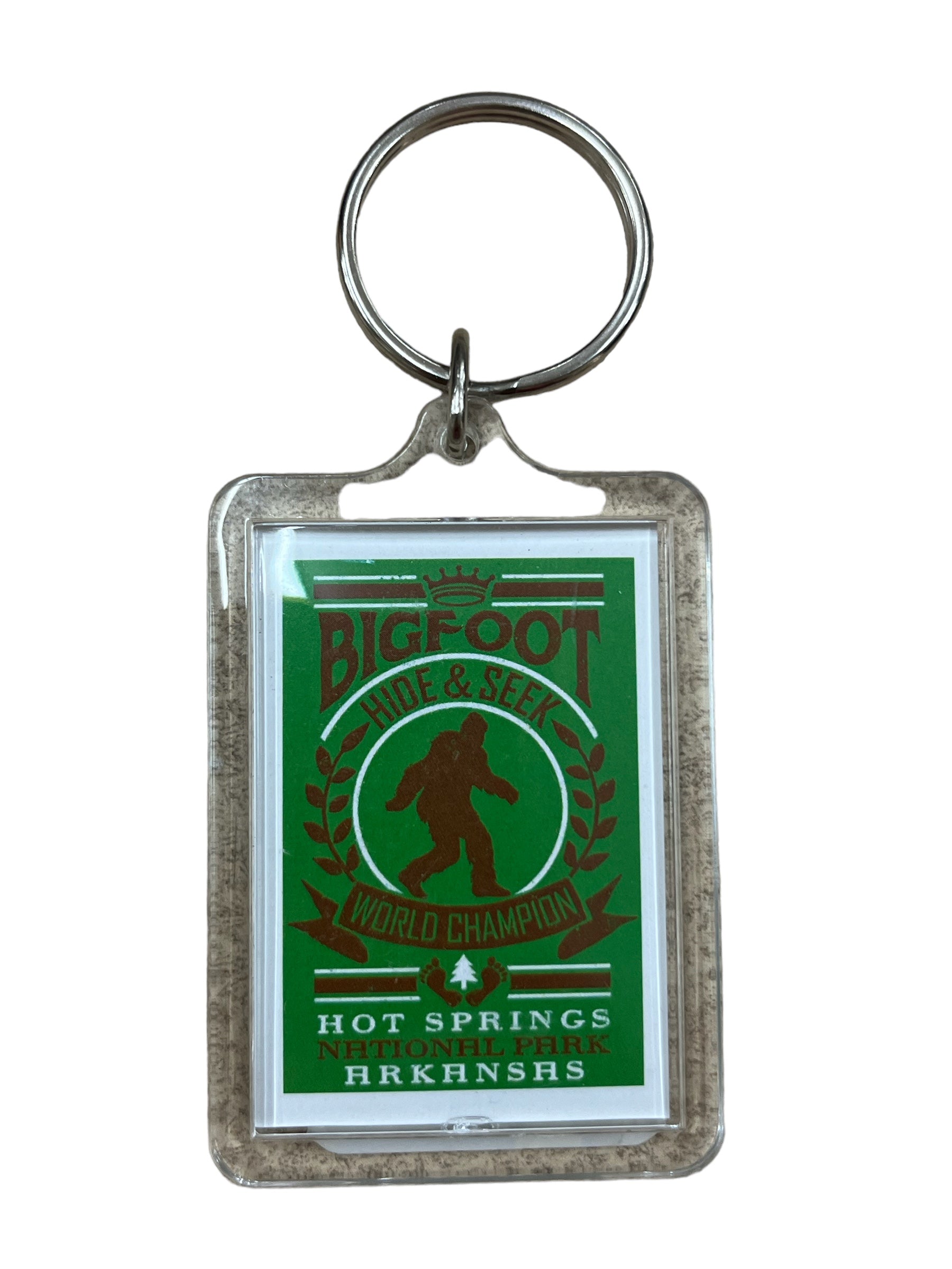 Do you ever feel like someone or something is playing hide and seek with you while in the woods? Maybe, just maybe, you've been visited by Bigfoot in Hot Springs National Park. Get this acrylic keychain to remember what the games you played.