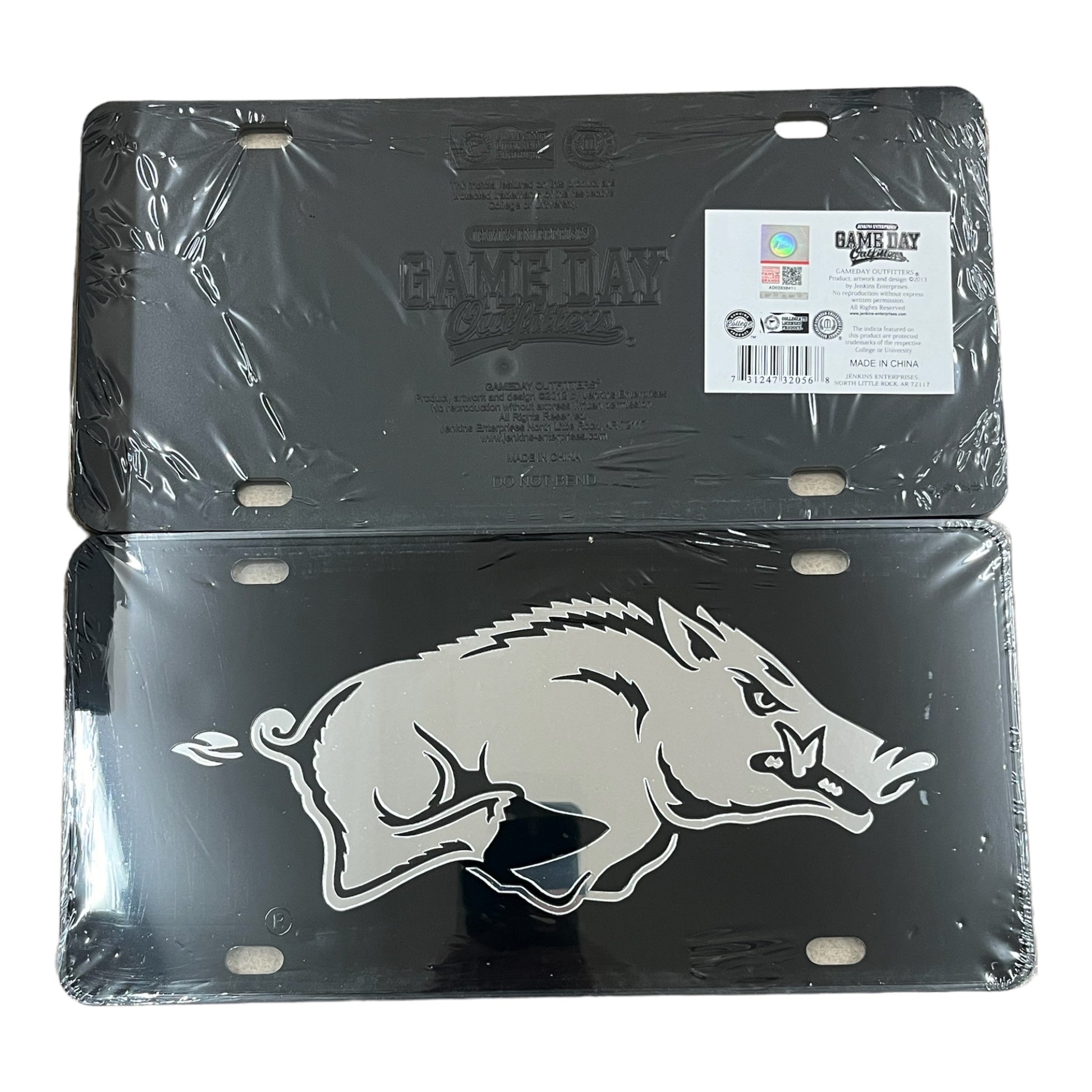 Licensed running Razorback on premium mirrored car tag.