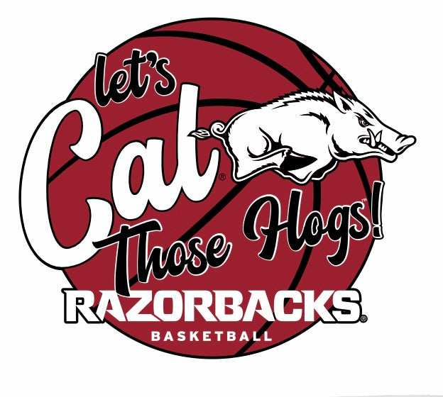 Let's welcome new Men's Basketball Coach of the Arkansas Razorbacks John Calipari as we Cal Those Hogs! White, short-sleeved t-shirt.