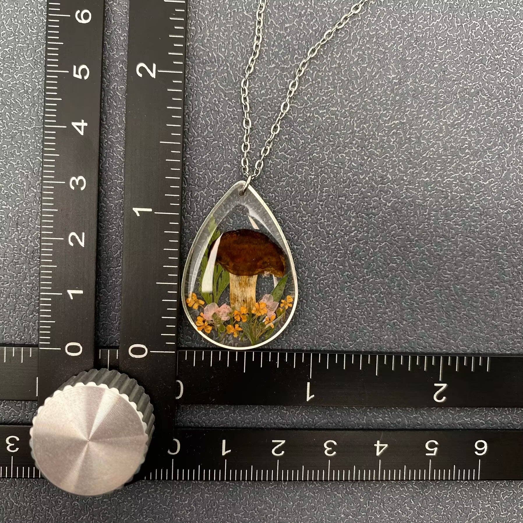 Dried Flower Mushroom Drop Charm Necklace - PDF