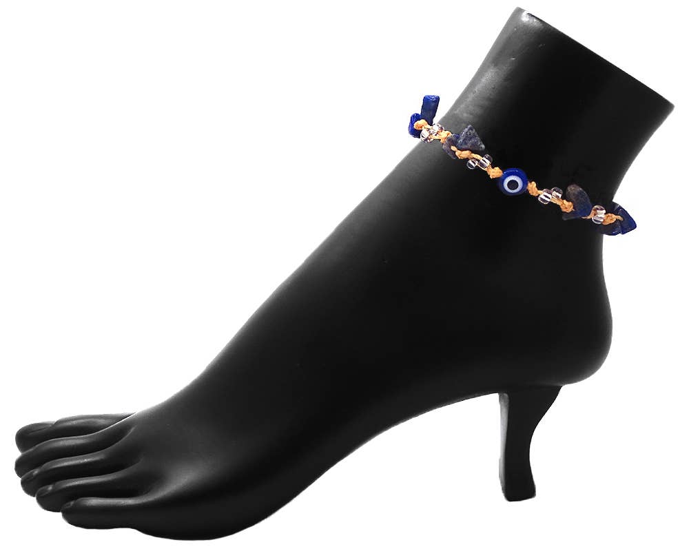 Evil Eye Bead Charm Chip Stone Macrame Pull Tie Anklet