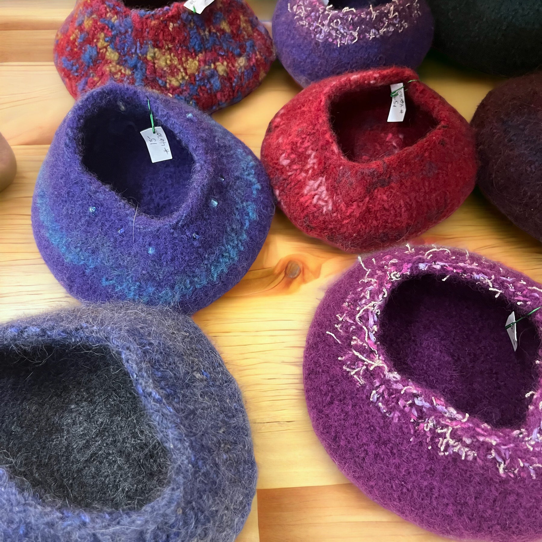 These felted pods are handcrafted, and no two are exactly alike. These are perfect catch-alls for your keys, change, jewelry, remote controls, or whatever else you might need.
