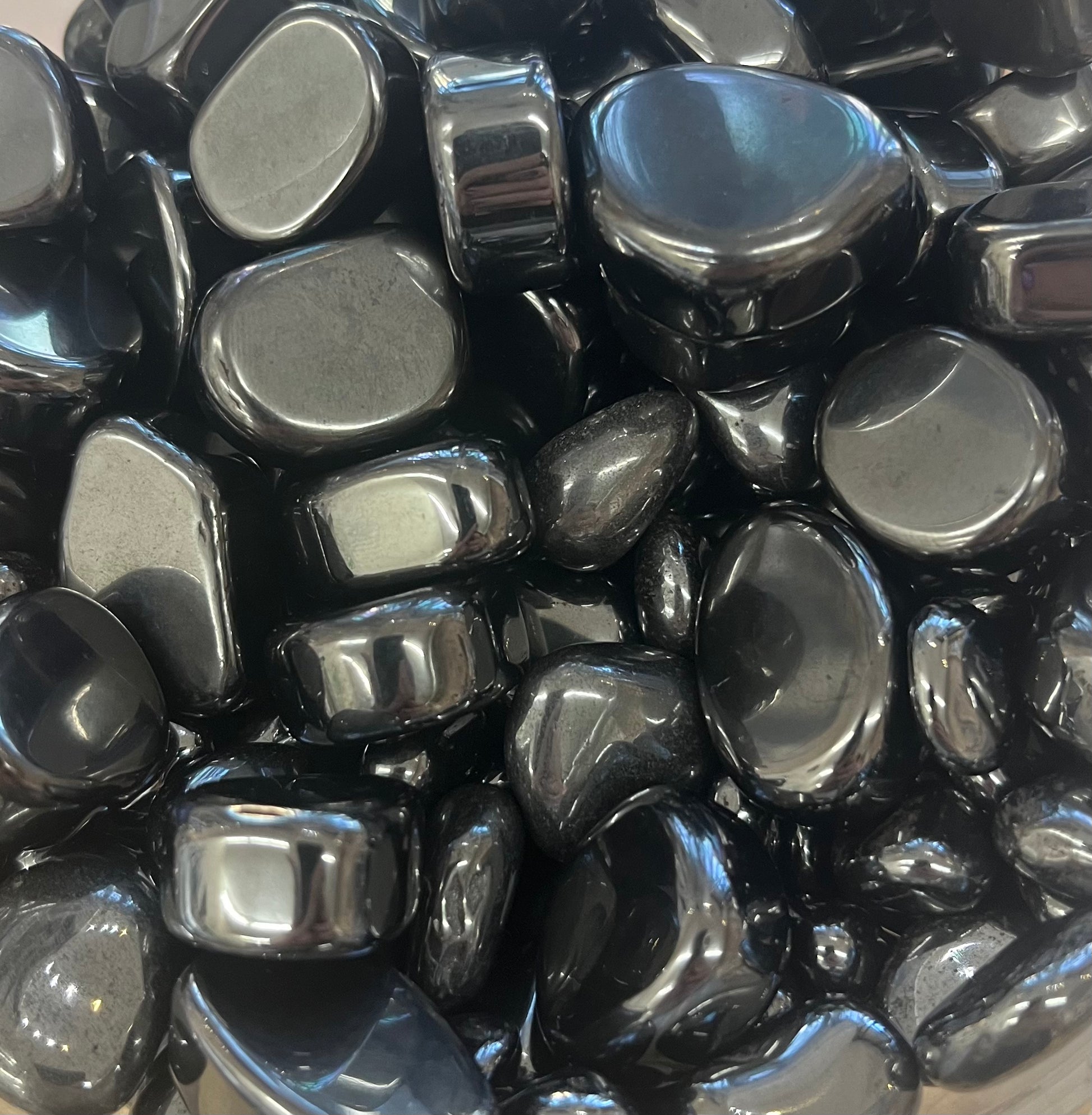 Hematite, a steel grey colored stone that can be found in Arkansas, is believed to assist with grounding, protection, strength, and mental health.