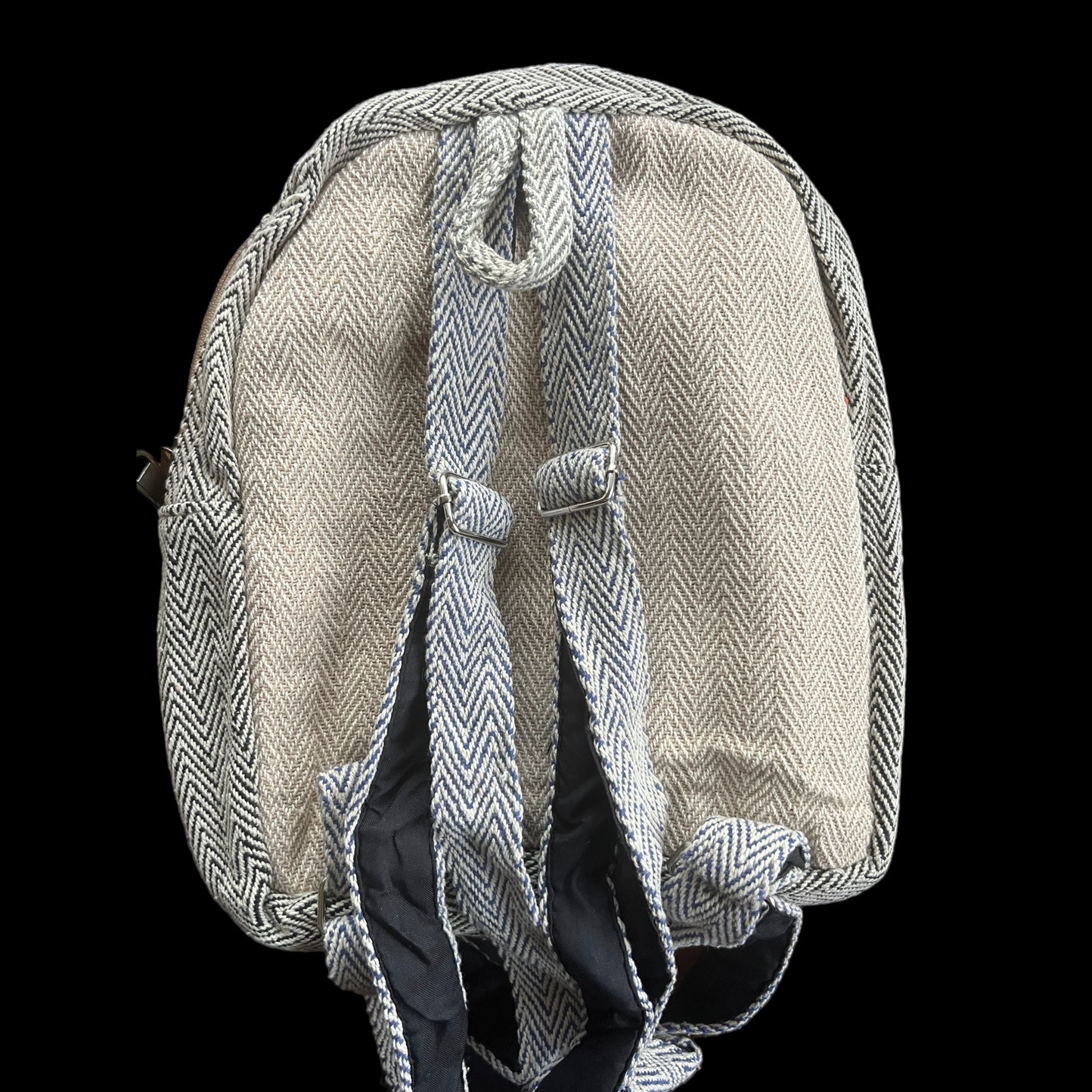 Nepalese artisans have handcrafted these backpacks from natural hemp and cotton textiles. No two are exactly alike. Each bag has adjustable straps, two zippered pockets, and an internal sleeve to help you organize your contents.