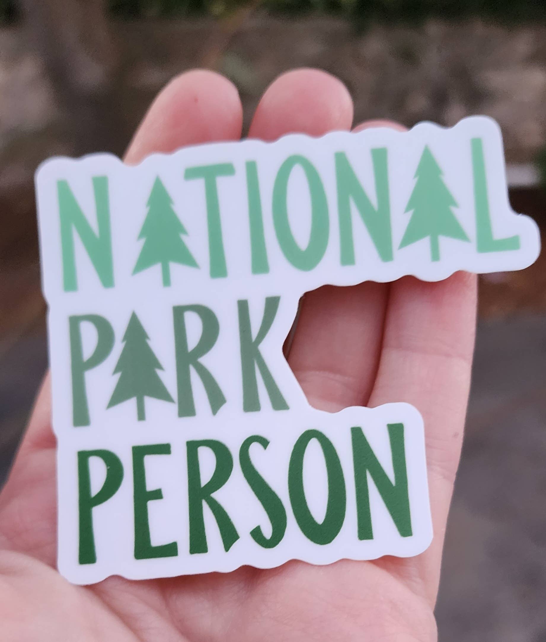 For all those who yearn for the serene beauty and boundless adventures of our National Parks, our National Parks Person sticker is the perfect choice. This 3" sticker delivers a simple yet powerful message that resonates with outdoor enthusiasts, travelers, and nature lovers. Emblazoned in tranquil blue, these words are a declaration of your customers' longing to escape into the embrace of the wilderness, explore uncharted trails, and bask in the tranquility of nature's wonders. This sticker is a versatile addition to their collections, suitable for laptops, water bottles, car windows, and more. It is a constant reminder that the call of the great outdoors is never too far away.