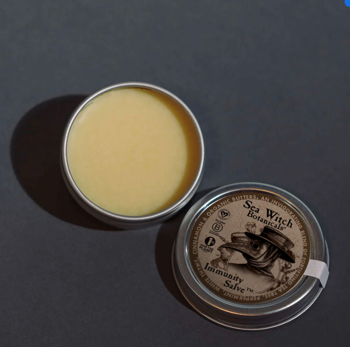 Ingredients: organic coconut oil, fair trade organic cocoa butter, candelilla wax, non-gmo grape seed oil, essential oil blend (cinnamon, clove, eucalyptus, orange, peppermint, tea tree, white thyme)