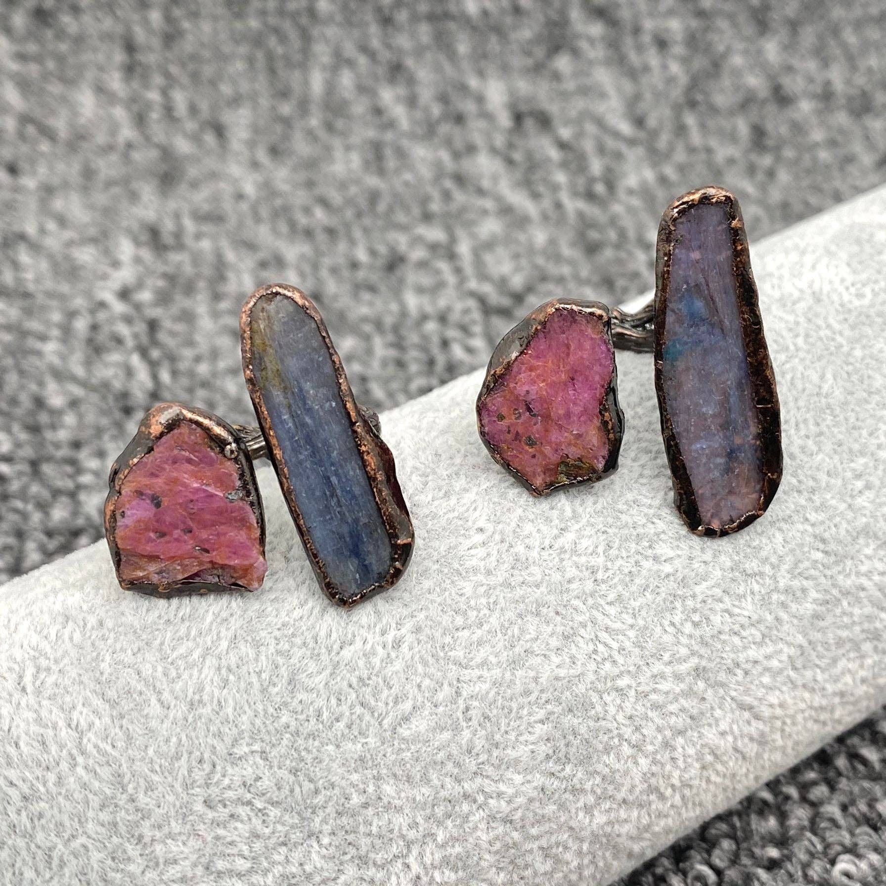 Natural Stone Raw Ruby & Kyanite Vintage Adjustable Ring - CS