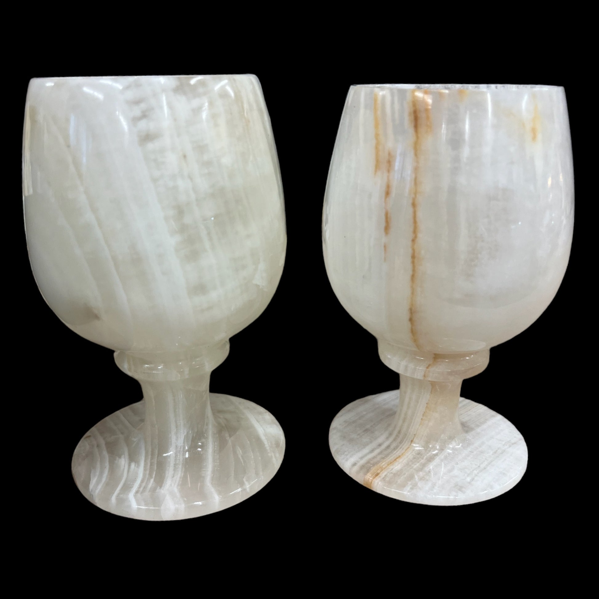 Perfect bridal gift or for anyone who loves wine. The natural banded onyx stone provides a cooling, refreshing aspect that no glass no emulate. When not in use, store in the royal blue silk-lined case.