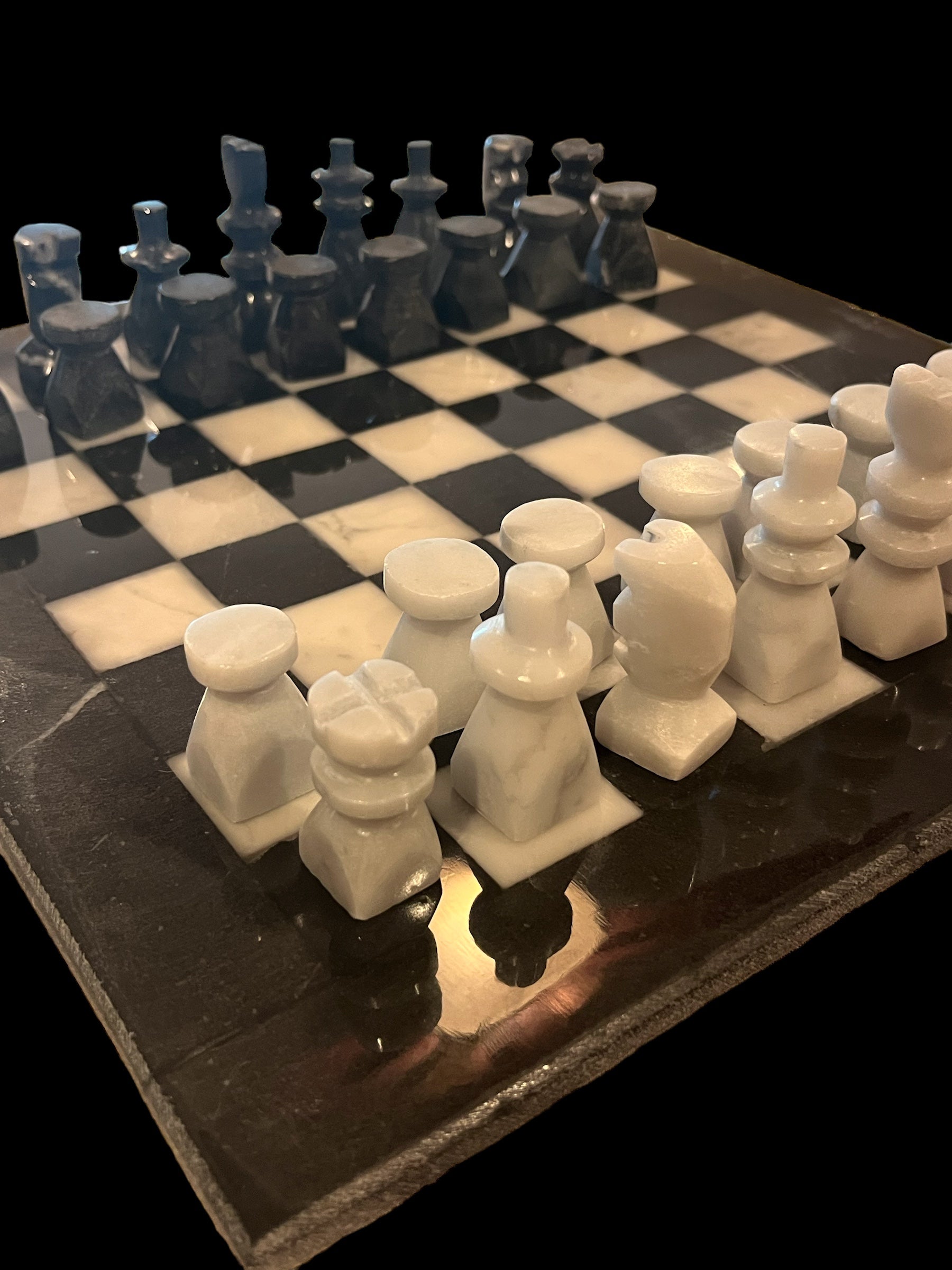 Play chess in style with this chess set hand-carved from pieces of orthoceras fossil. Pieces are crafted with less chance of breakage than most.