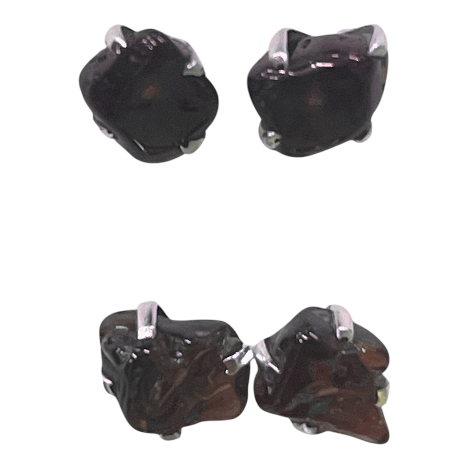 Raw garnet, peridot, Peruvian opal, or rose quartz gemstone earring set in sterling silver studs.