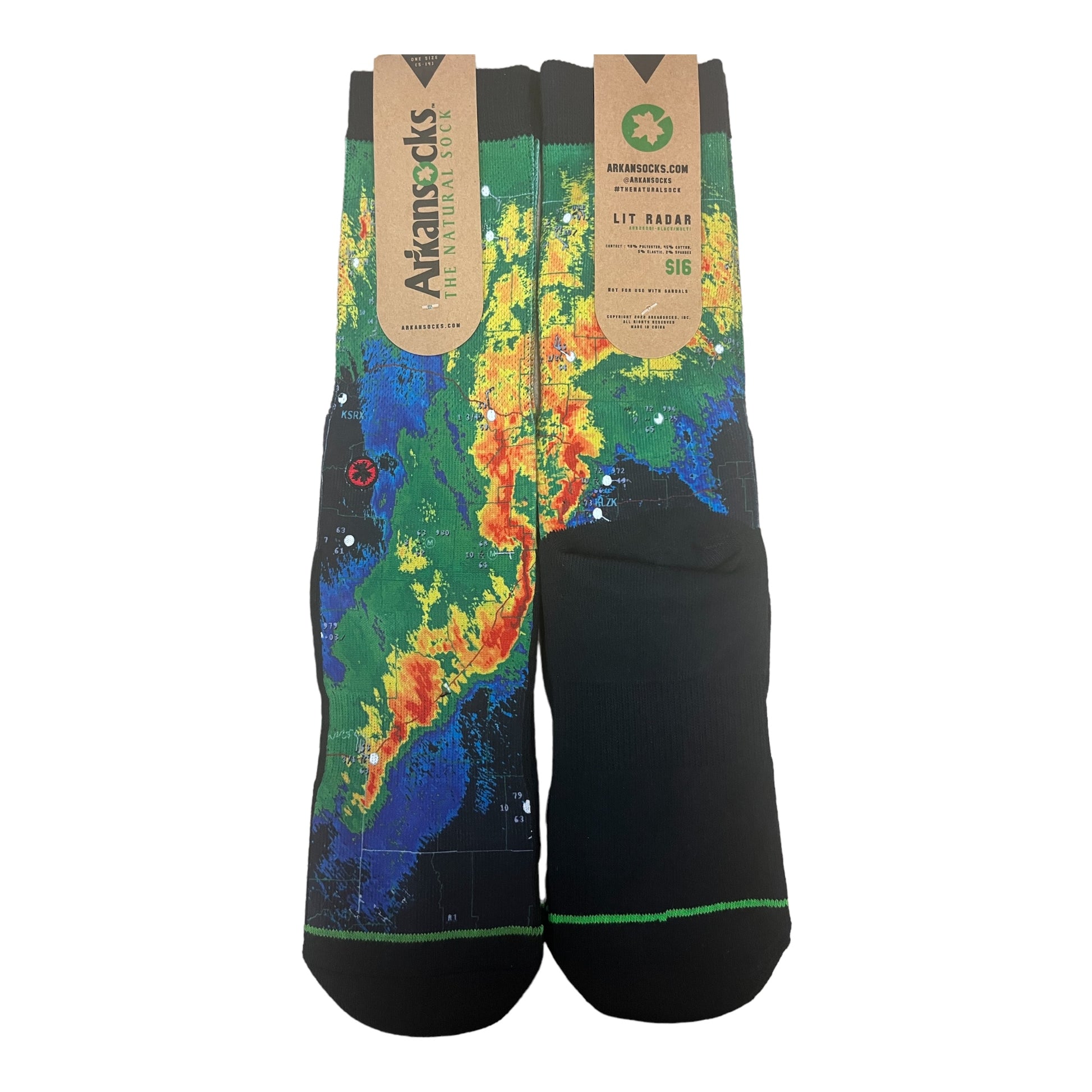 Due to extreme weather conditions, this sock was produced! 48% Polyester, 45% Cotton, 5% Elastic, 2% Spandex ARK26001 Comfort Fit Black/Multi