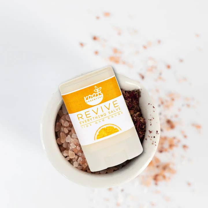 Introducing our REVIVE Everything Salve, a natural and nourishing salve that protects, hydrates, and regenerates your skin. Made from a blend of beeswax, organic sunflower oil, shea butter, and orange and lemongrass essential oils, this salve is perfect for lips, hands, and elbows.