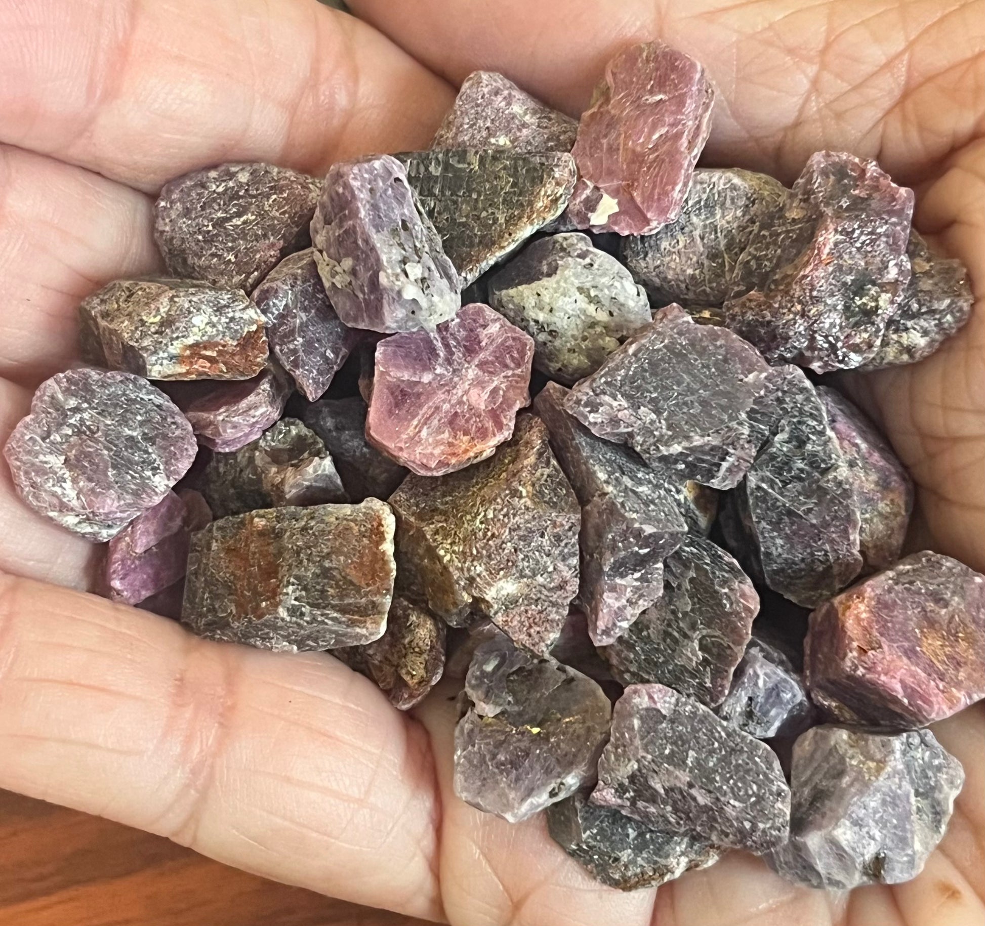 All natural red ruby still in its raw form. As a stone of nobility, ruby is believed to strengthen one's fortitude and enhance one's zest for life.