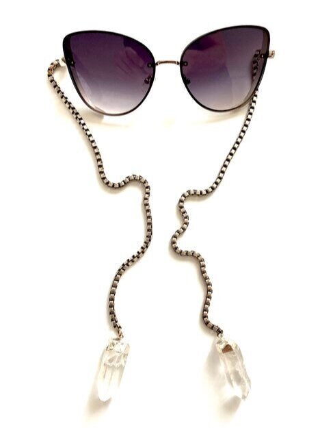Flat frame UV400 gray tinted lens and silver glitter side shield Antique silver plated box chain
