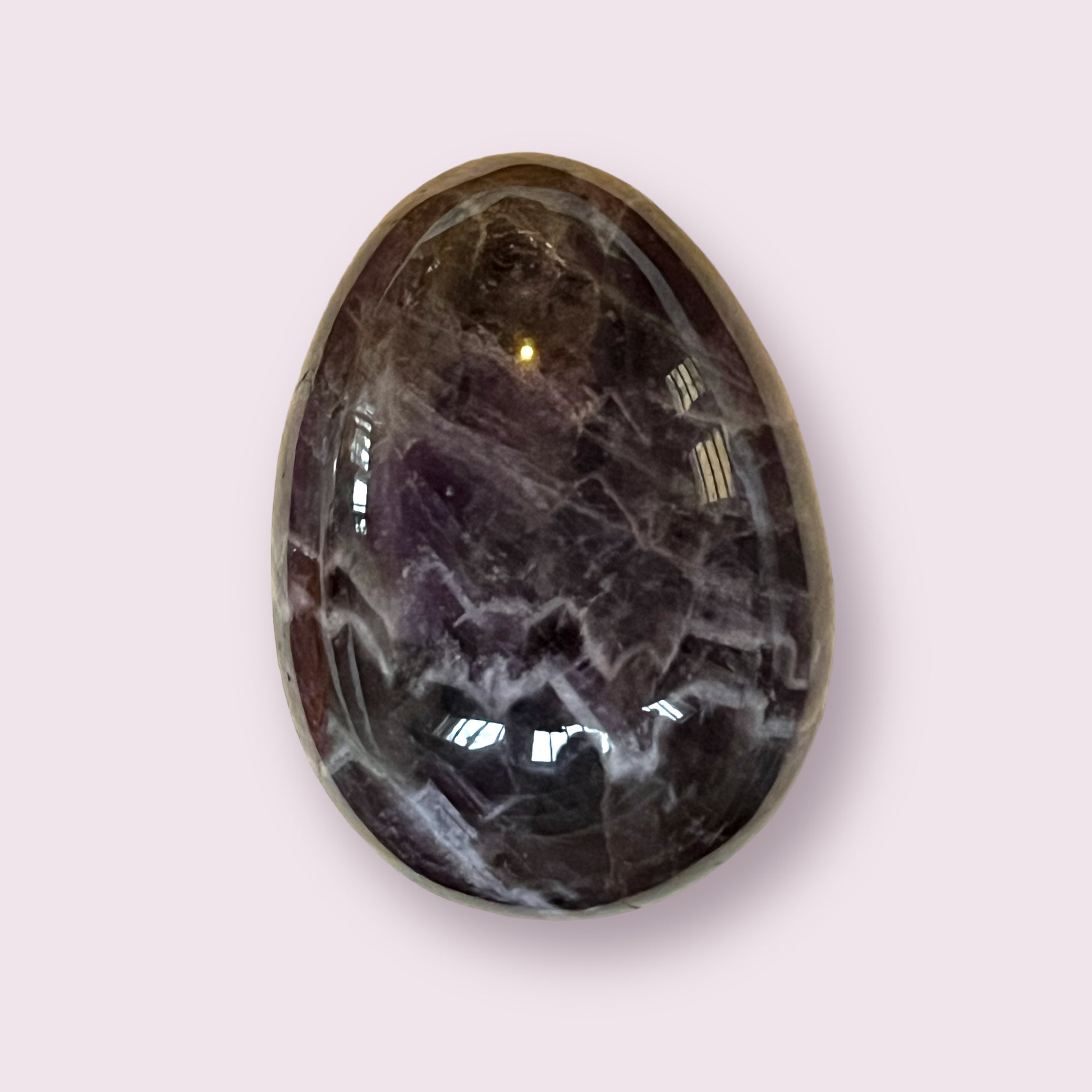 Finely polished eggs from amethyst, quartz, or tiger eye.