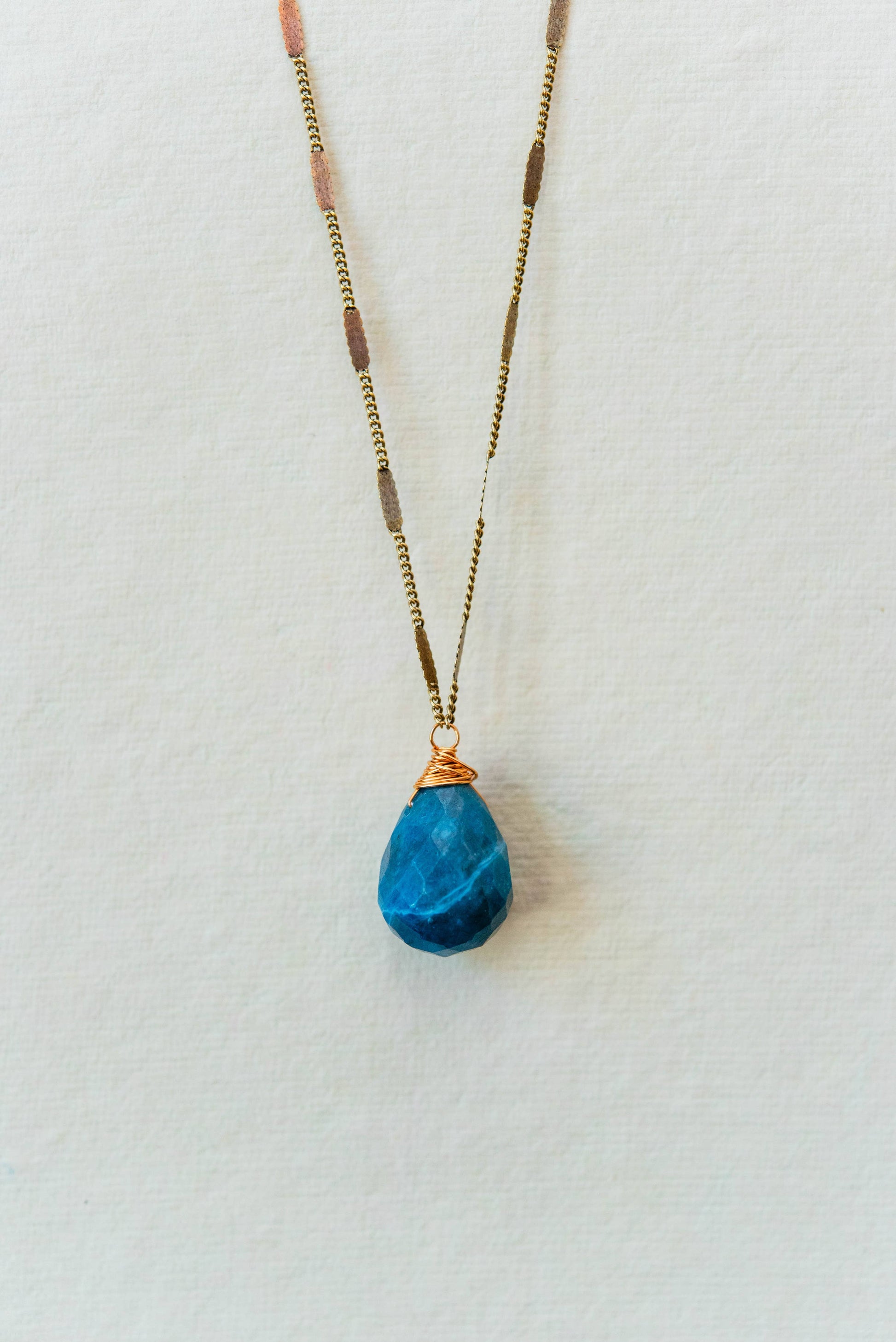 Apatite Stone Drop, Antique Gold Plated or Antique Silver Plated Chain