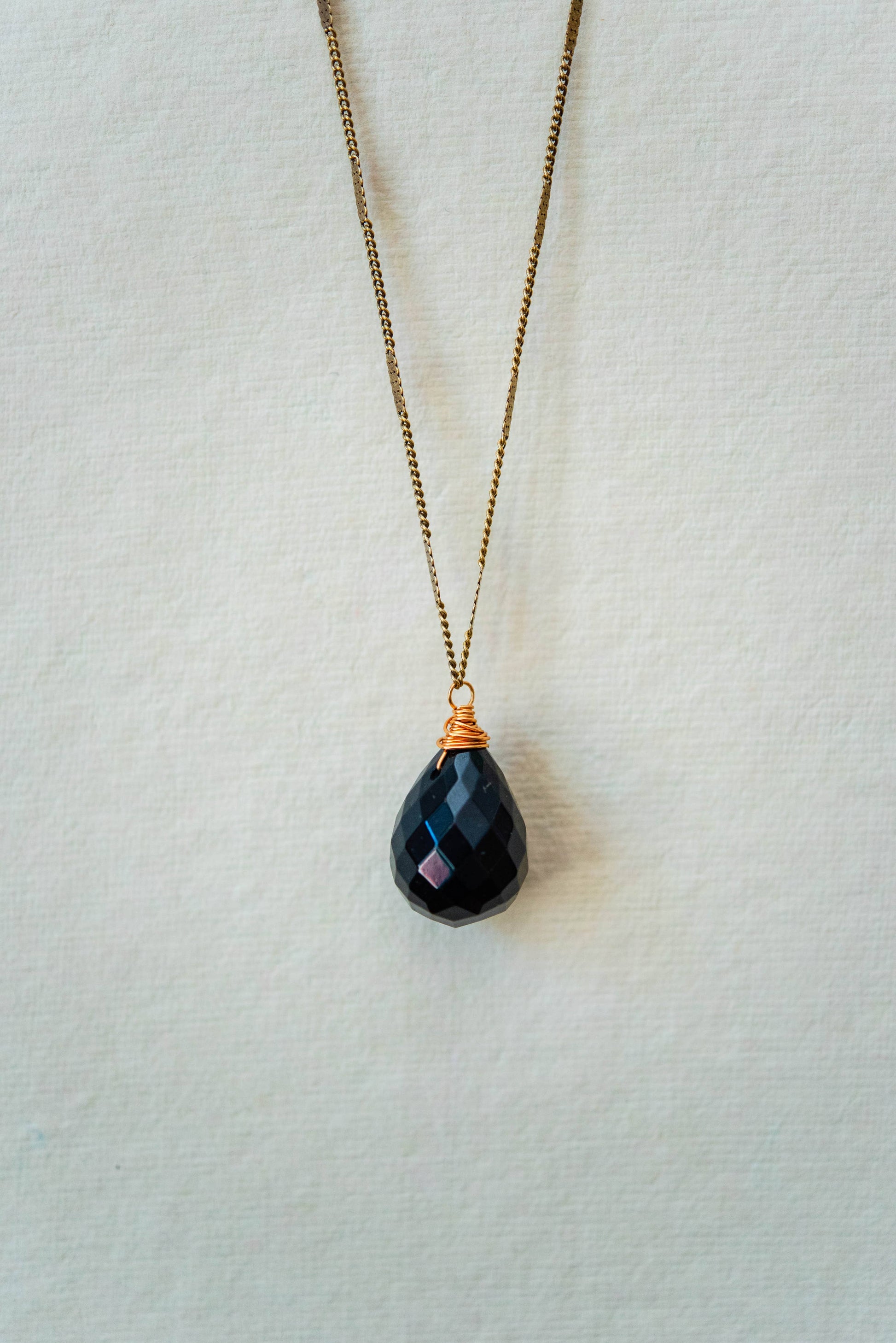 Black Jasper Stone Drop on Antique Gold Plated or Antique Silver Plated Chain