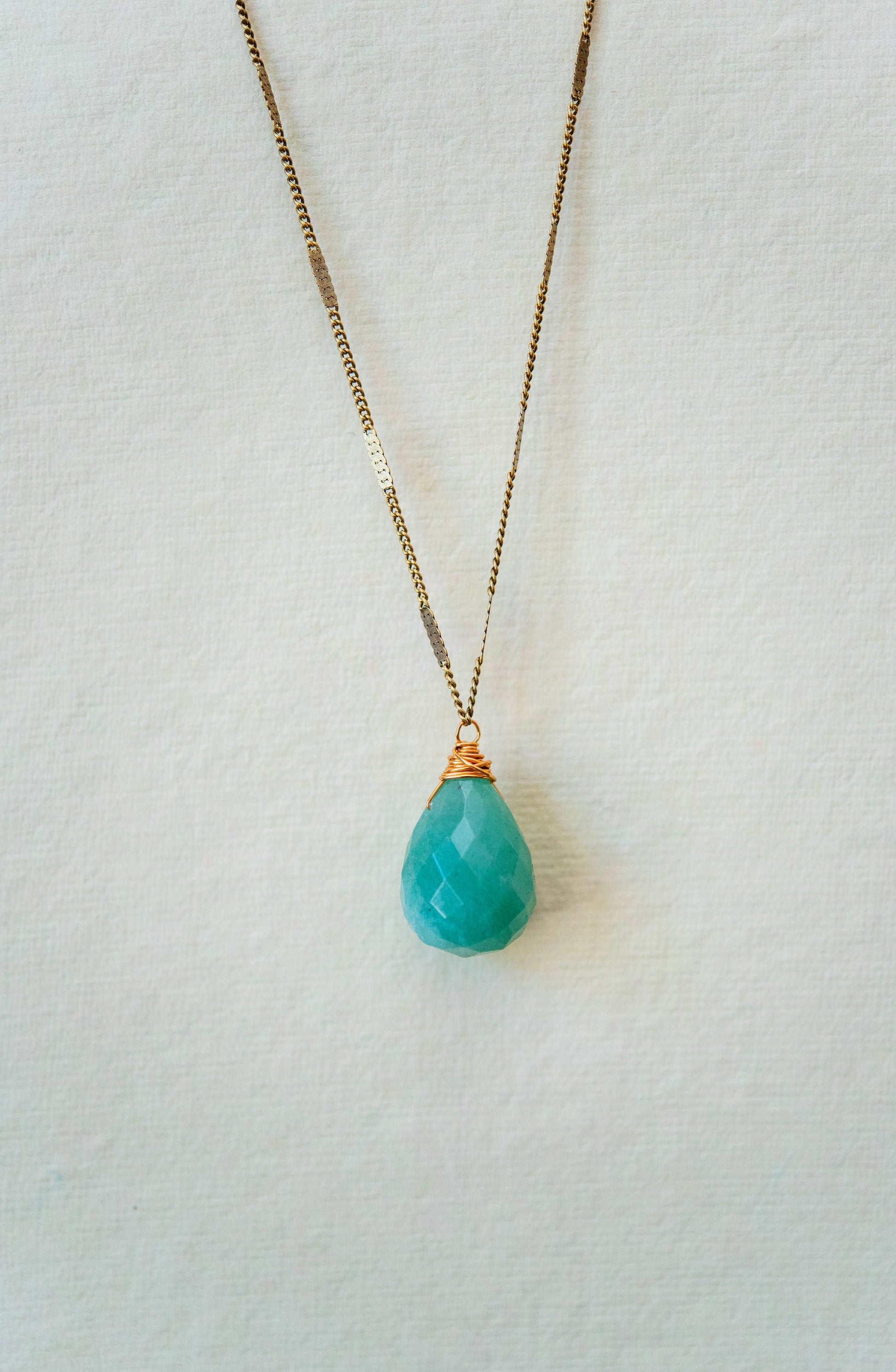 Green Aventurine Stone Drop on Antique Gold Plated or Antique Silver Plated Chain